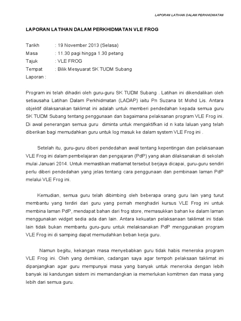 Katulis Guna mendukung kegiatan PJJ kali ini kami akan berbagi contoh format laporan pembelajaran daring dalam bentuk file berekstensikan Docx Microsoft Word. Murid PPKI kepada ibubapa. LAPORAN TAKLIMAT FROG VLE PROGRAM SARANA IBU BAPA BERSAMA PIBG SK PADANG LUMAT TARIKH.